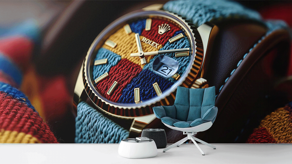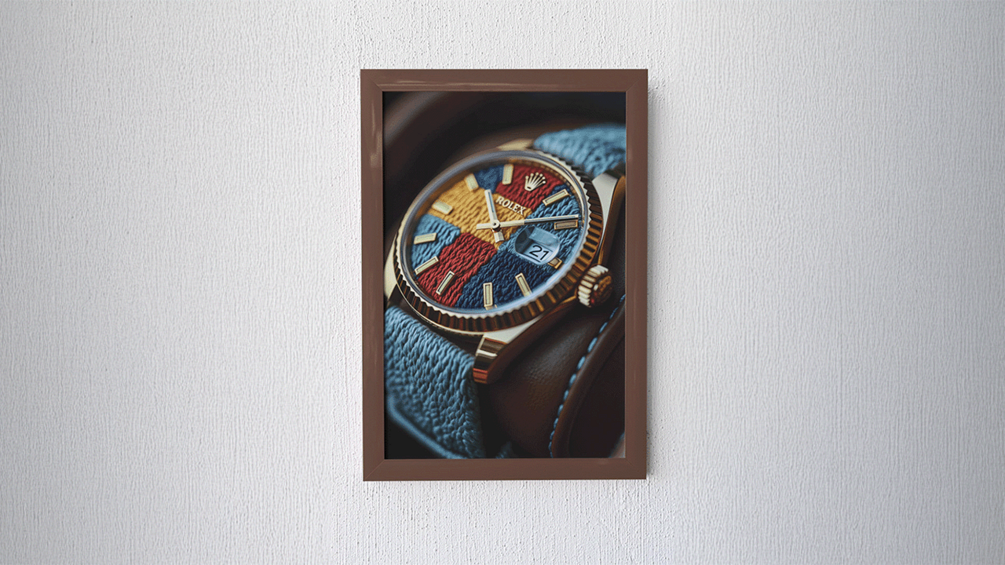 Bring a bold fusion of luxury and street culture into your space with the Street Stitch Rollie digital art download. This high-resolution artwork reimagines the classic Rolex Datejust 41 with a vibrant knitted dial and strap, merging craftsmanship with urban-inspired design. Perfect for watch enthusiasts, streetwear lovers, and modern art collectors, this unique piece adds a statement touch to any decor.